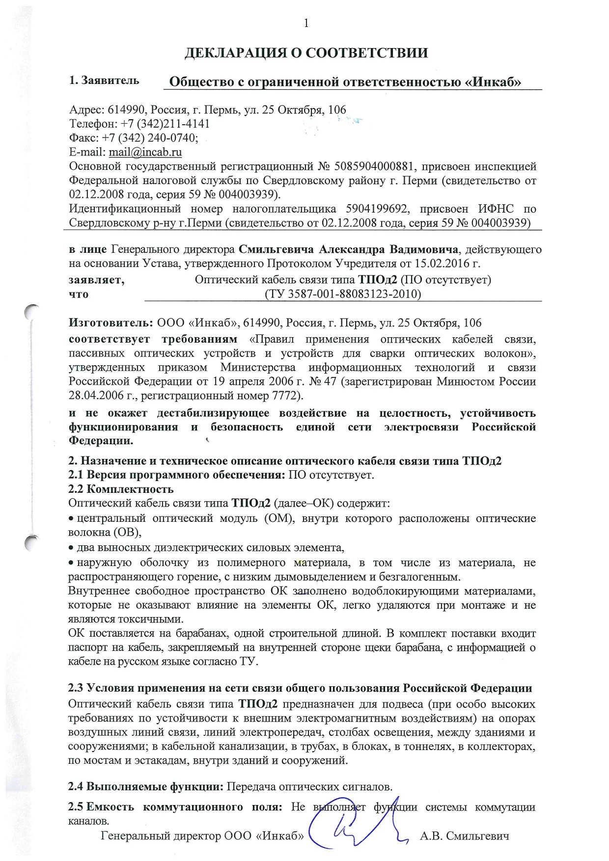 В качестве силовых элементов в ТПОд2 используются два стеклопластиковых прутка. В центре находится модуль с волокном (до 24 штук). Конструкция полностью диэлектрическая. Плоский дроп способен выдерживать высокие раздавливающие нагрузки — от 1,4 кН/см. Помимо этого ТПОд2 можно подвешивать на расстояние до 100 метров, допустимая растягивающая нагрузка — до 2,2 кН. Применение: подвес между опорами освещения, опорами связи, зданиями и сооружениями; подвес между опорами воздушных линий электропередач, контактной сети и автоблокировки железных дорог; внутри зданий; в кабельную канализацию, трубы, блоки, лотки, тоннели, эстакады, мосты, коллекторы.