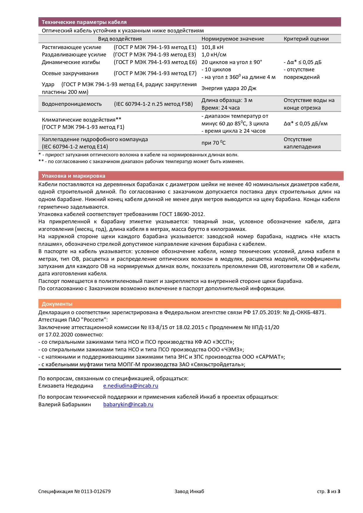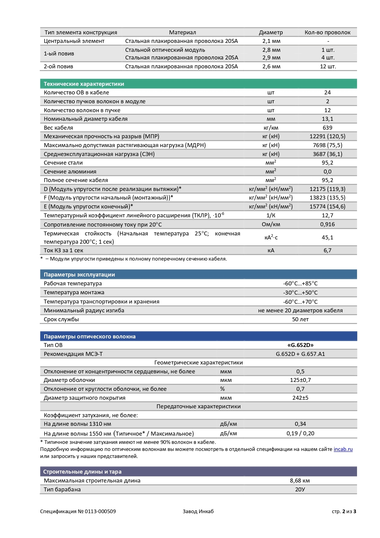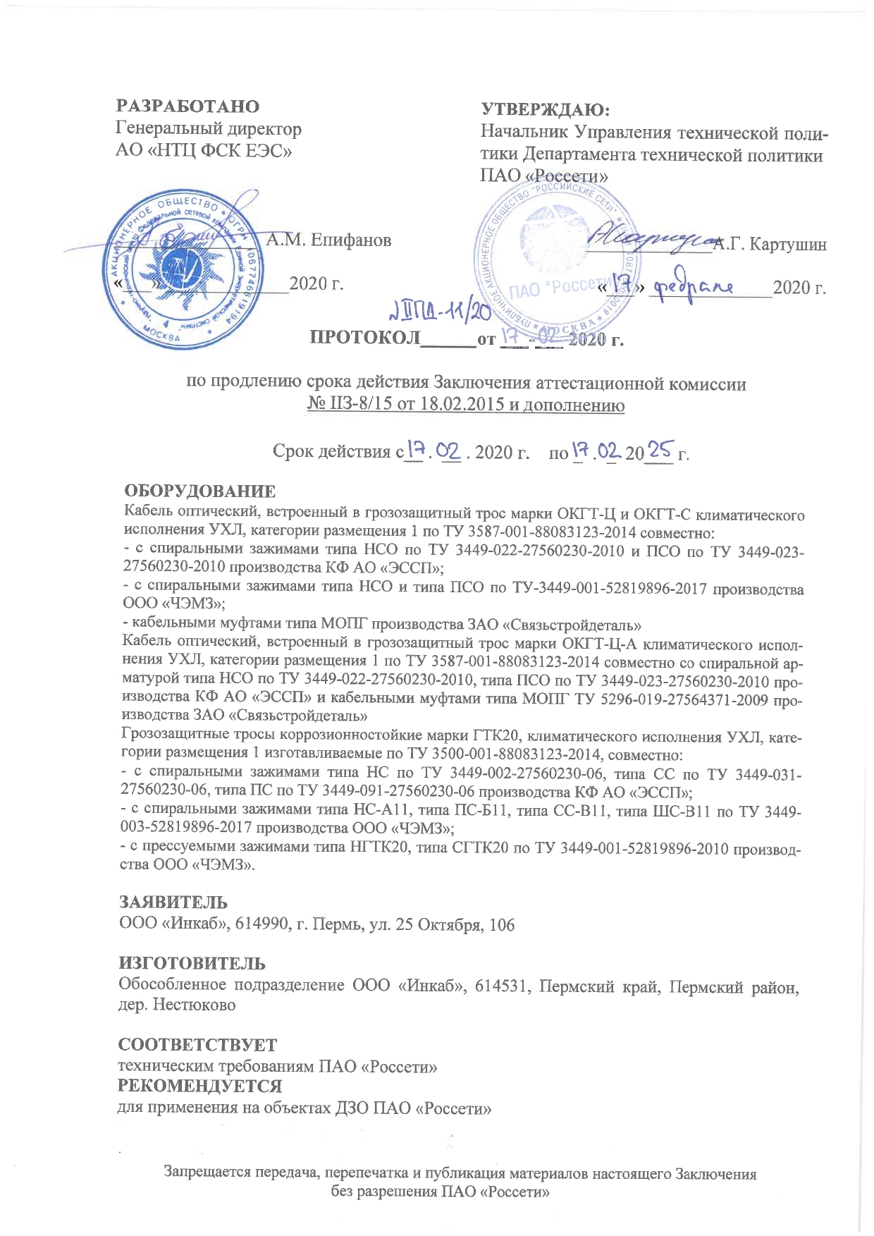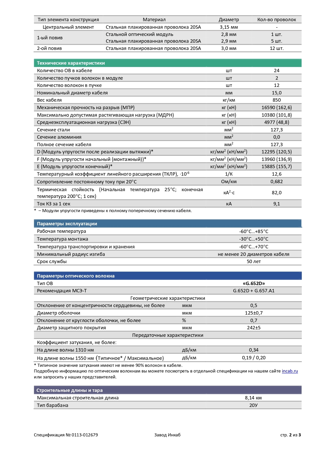 Применение: в воздушных линиях электропередачи напряжением 35 кВ и выше в качестве кабеля-датчика для систем распределенного температурного и акустического мониторинга (DTS, DAS) случаев опасной активности в зоне линий электропередач, ударов молний, короткого замыкания.