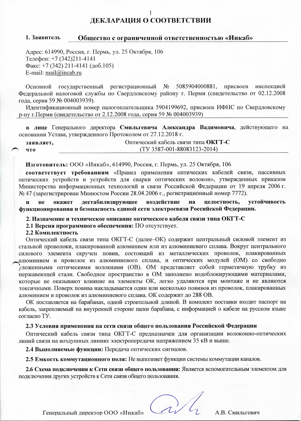Декларация о соответствии Д-ОККБ-4871 - ОКГТ-С до 29.04.2029