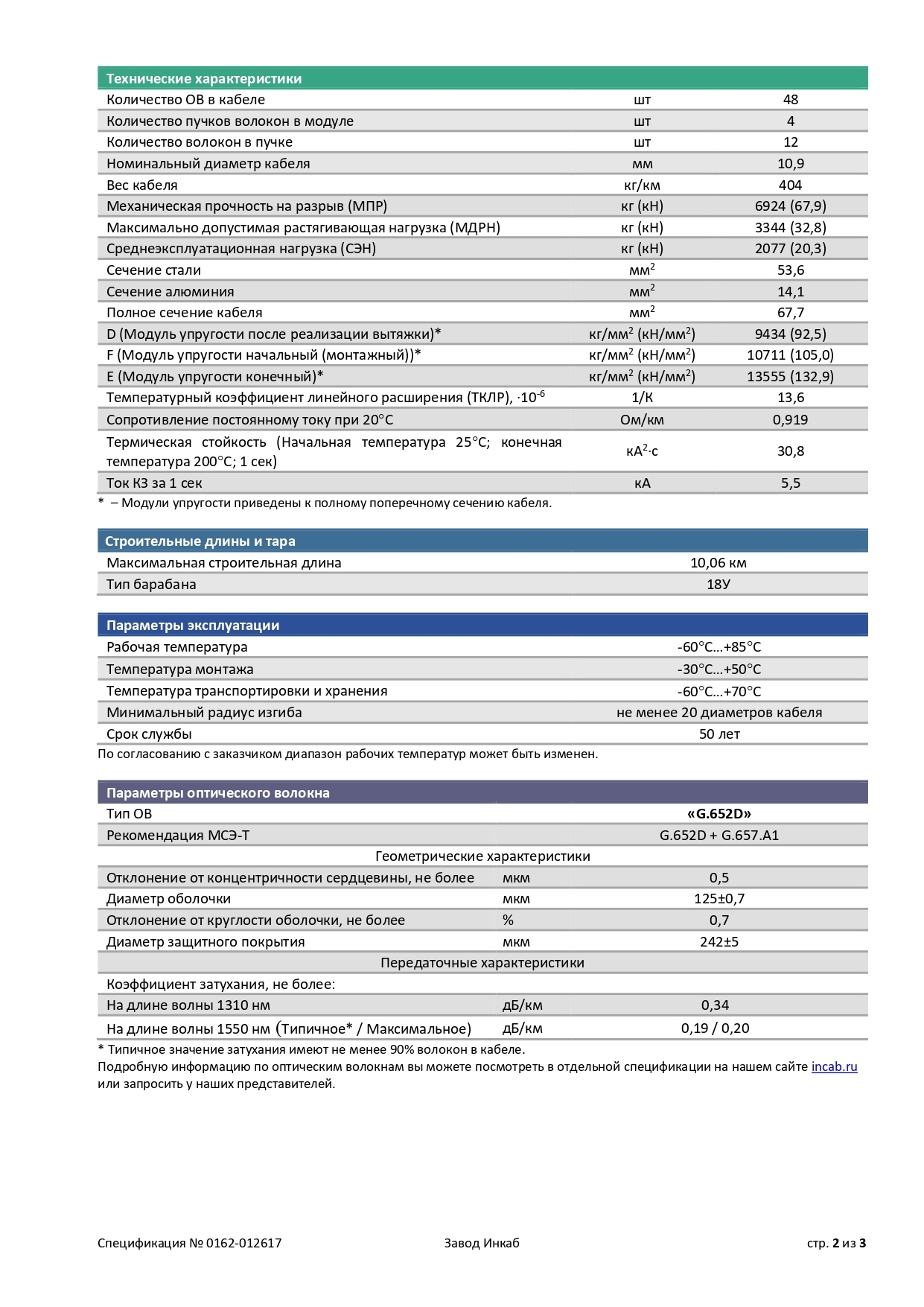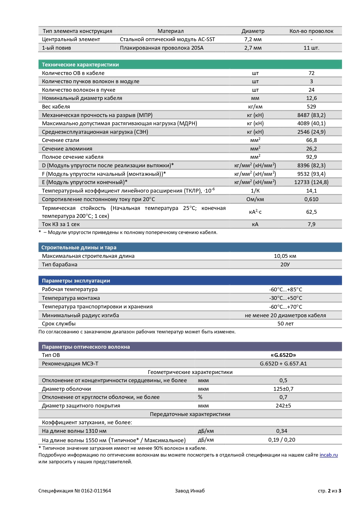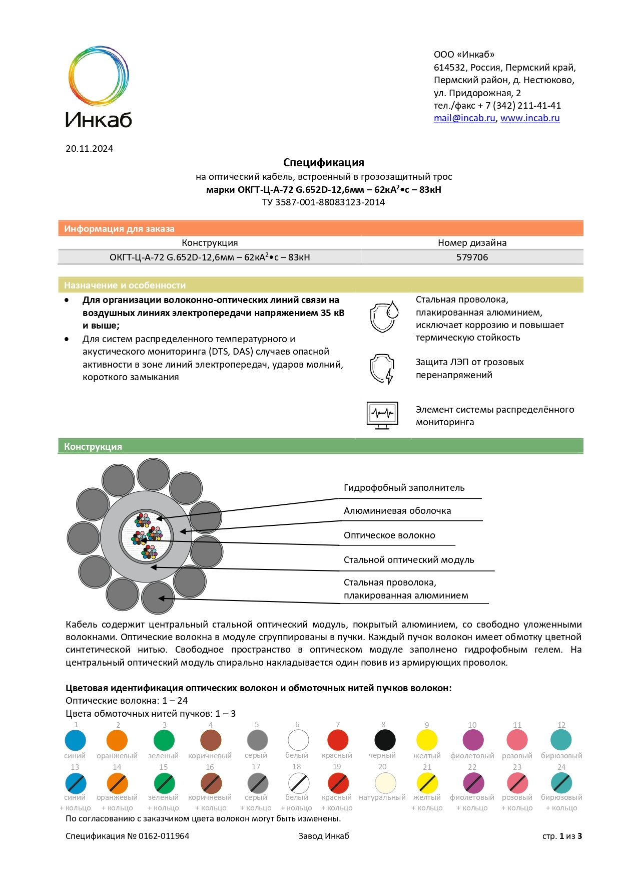 Применение: в воздушных линиях электропередачи напряжением 35 кВ и выше в качестве кабеля-датчика для систем распределенного температурного и акустического мониторинга (DTS, DAS) случаев опасной активности в зоне линий электропередач, ударов молний, короткого замыкания.
