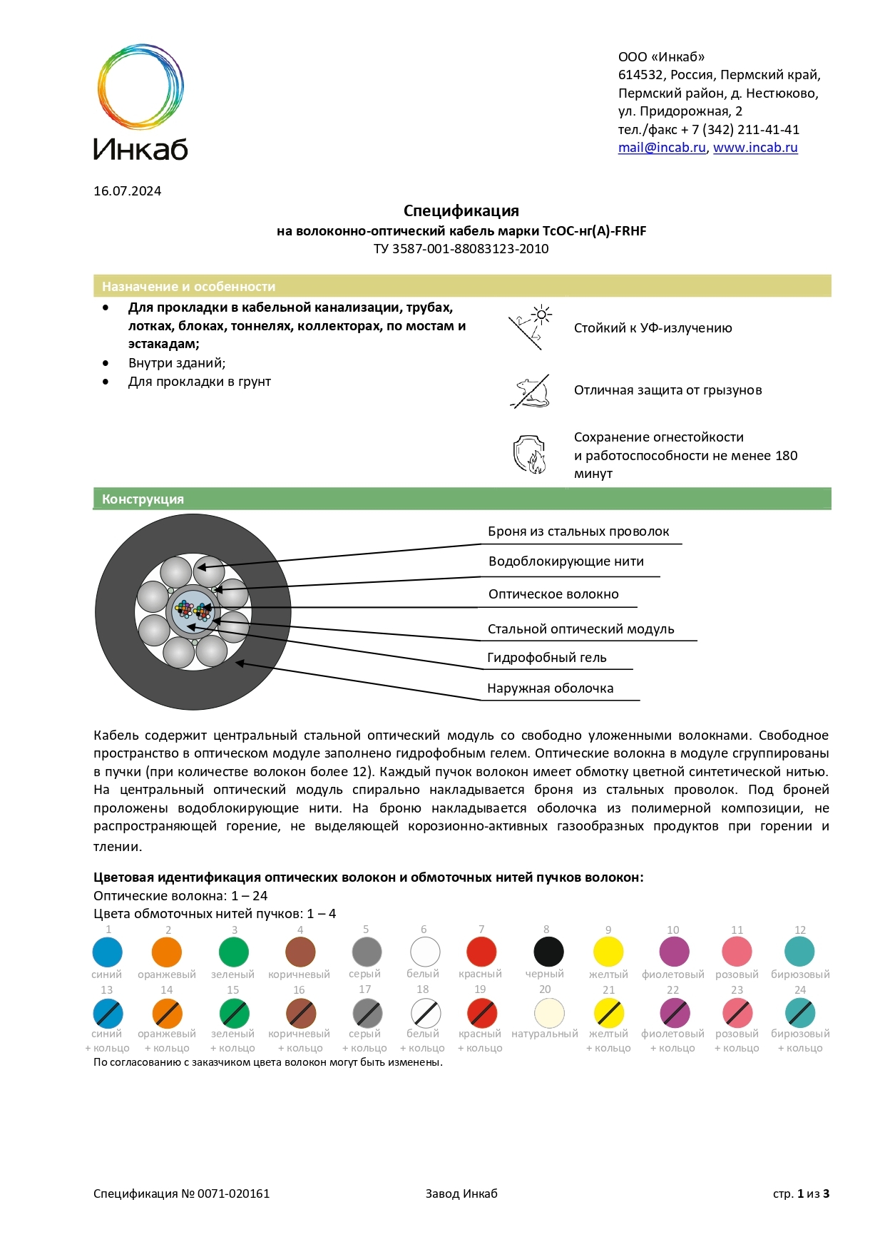 ТсОС – универсальный огнестойкий кабель. Конструкция ТсОС состоит из стального оптического модуля с волокном, на который накладывается броня из стальной проволоки и оболочка из безгалогенного компаунда. Главное преимуществоТсОС – высокая стойкость к нагрузкам. Помимо этого, кабель ТсОС тонкий (диаметр менее 10 мм), лёгкий и экономичный. Применение: в кабельную канализацию, трубы, блоки, лотки, тоннели, эстакады, мосты, коллекторы; внутри зданий; в грунт.