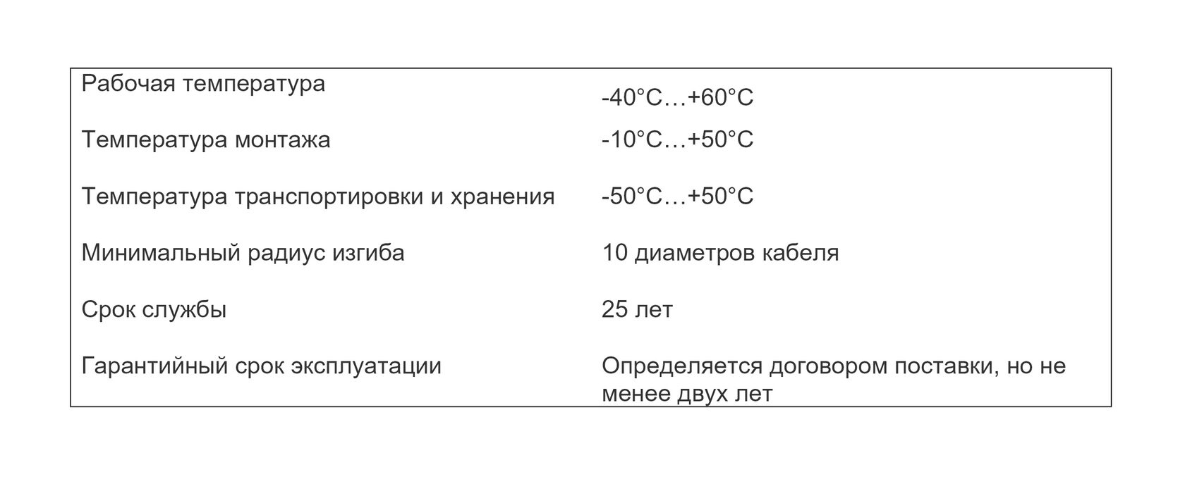 Параметры эксплуатации