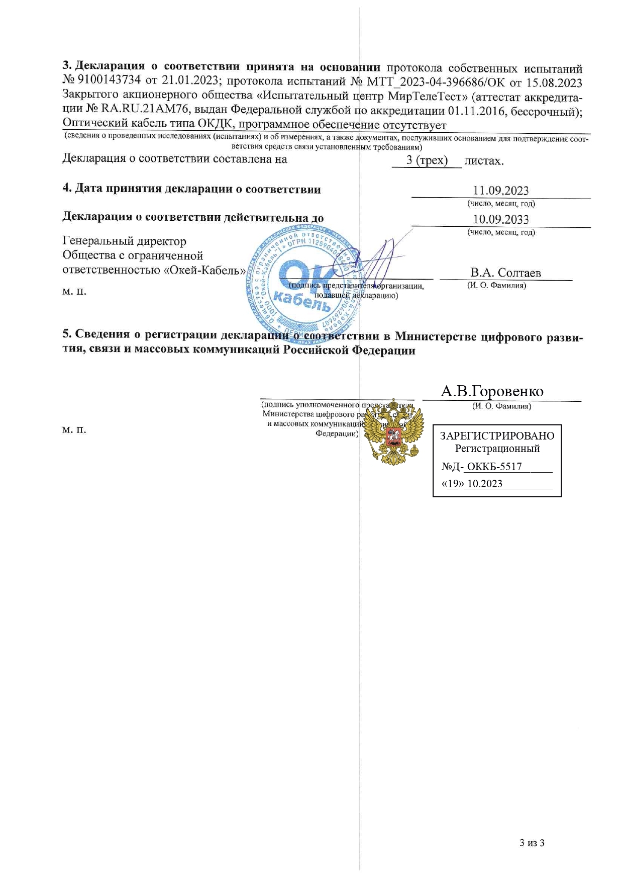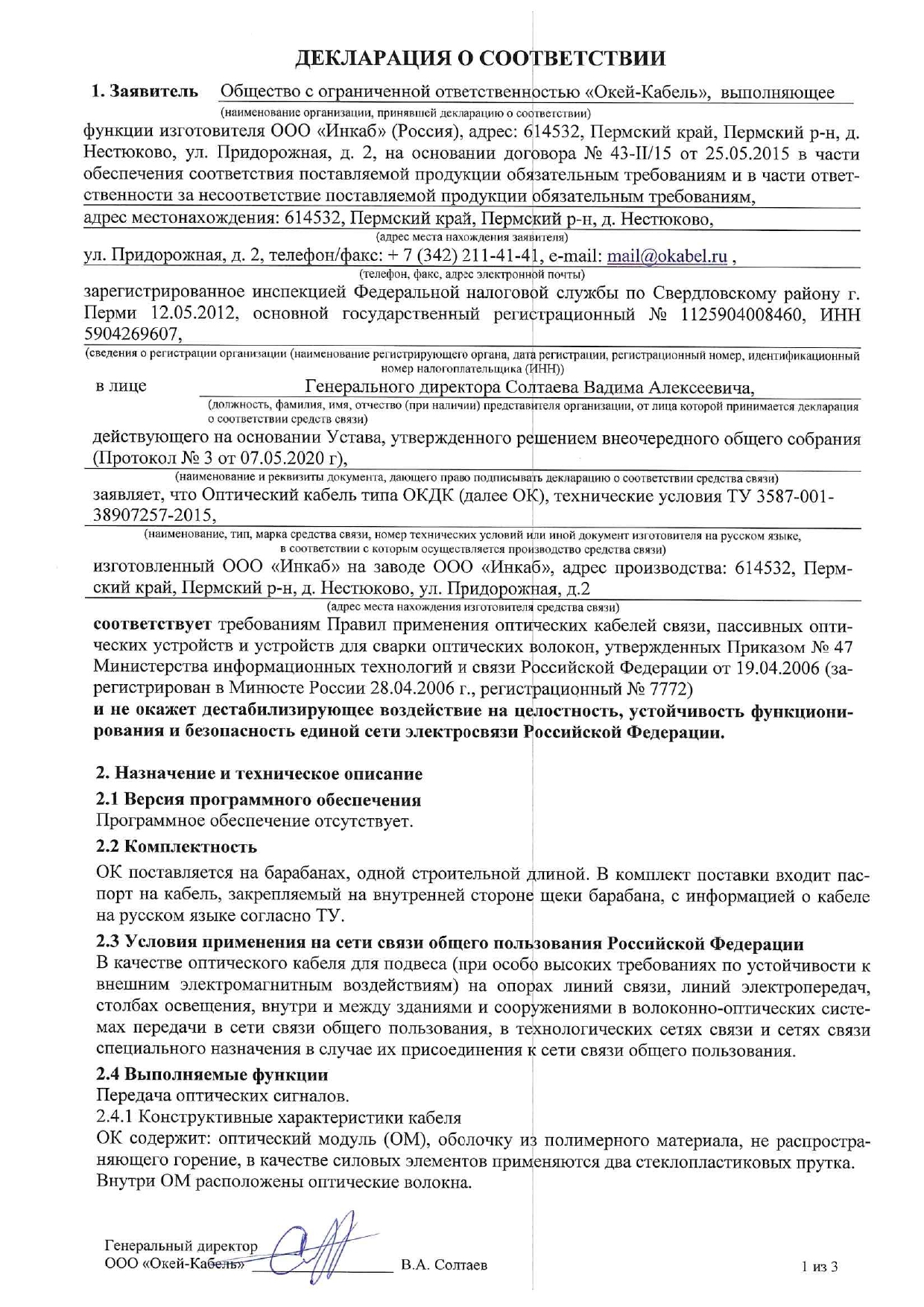 Декларация о соответствии ОКДК-2Д