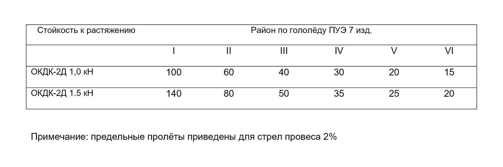 Таблица допустимых пролётов