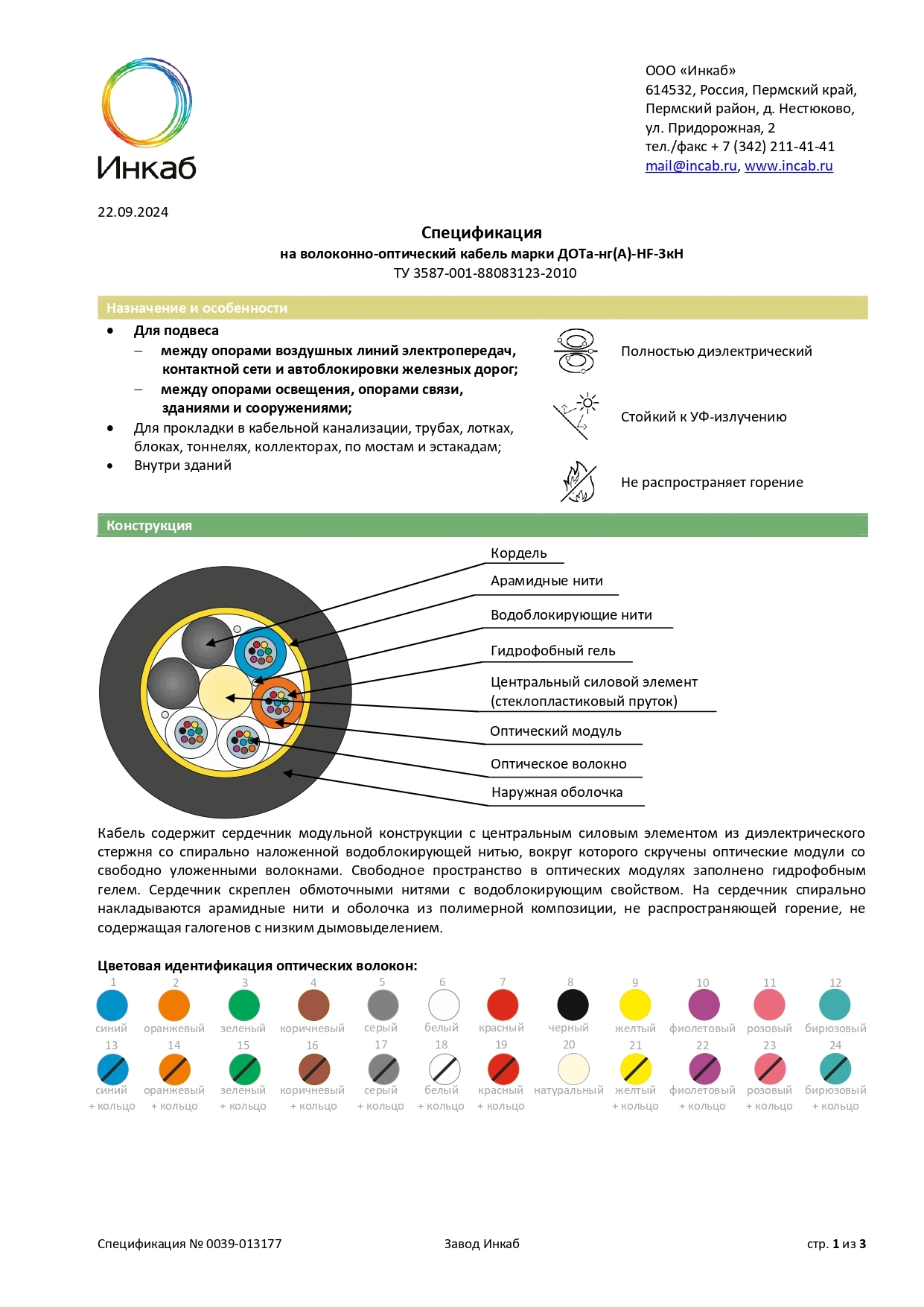 Безгалогенные. Спецификация ДОТа-нг(А)-HF-3KH