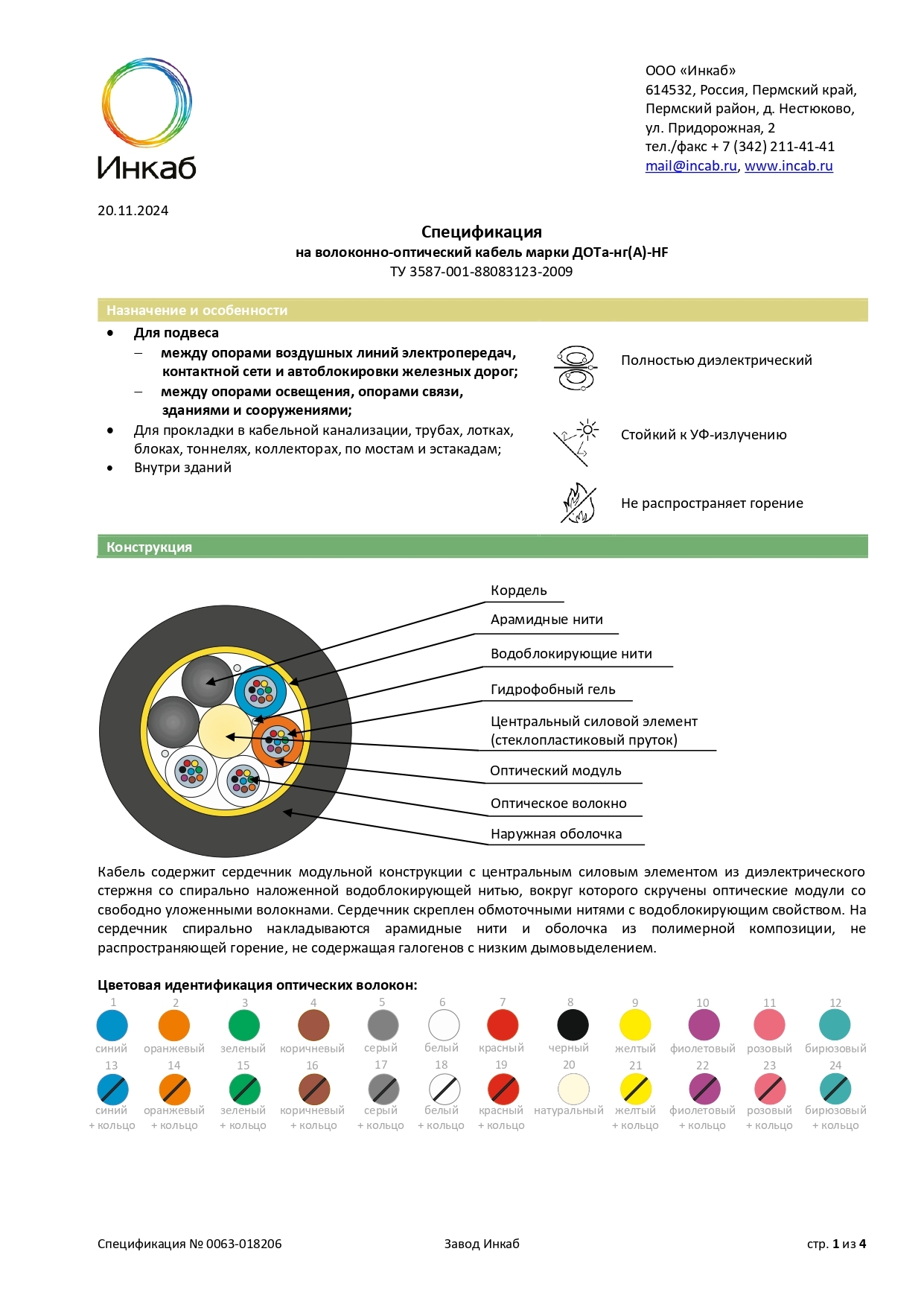 Безгалогенные. Спецификация ДОТа-нг(А)-HF-4KH