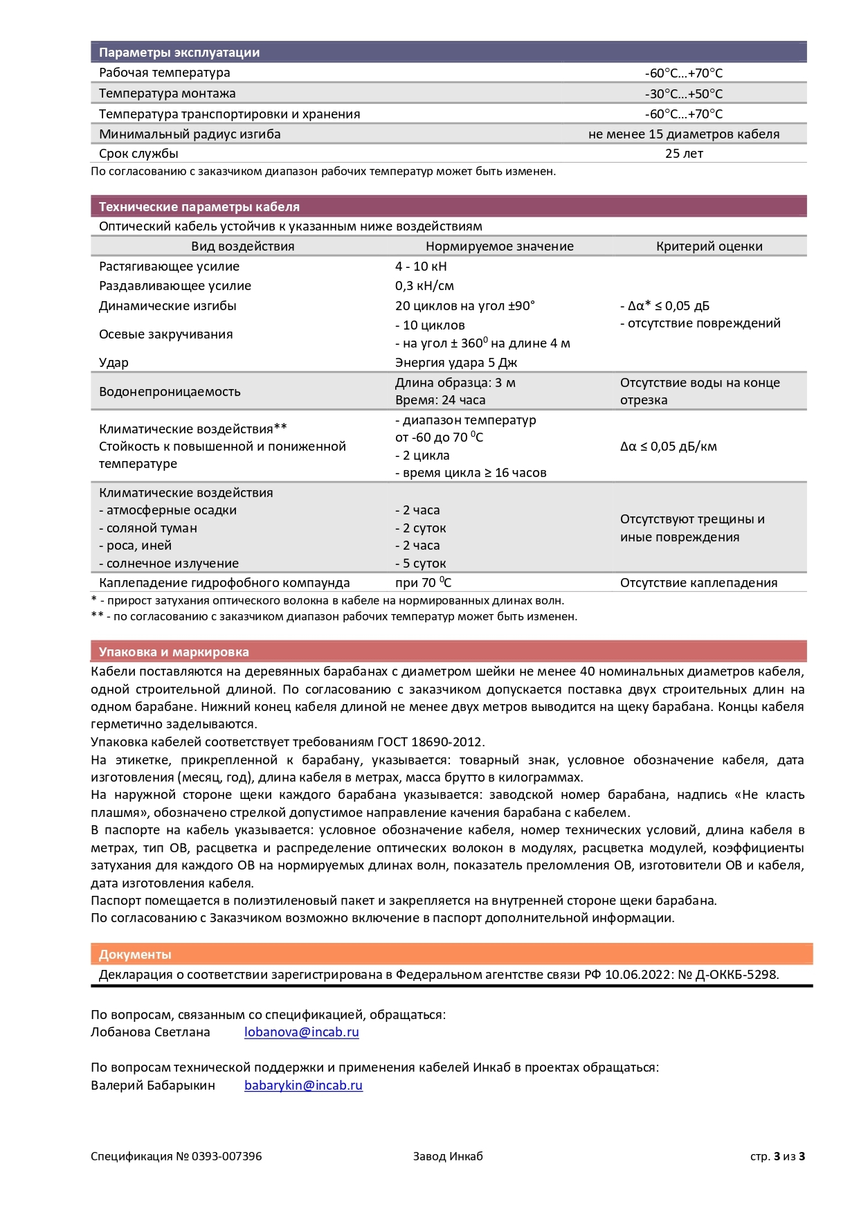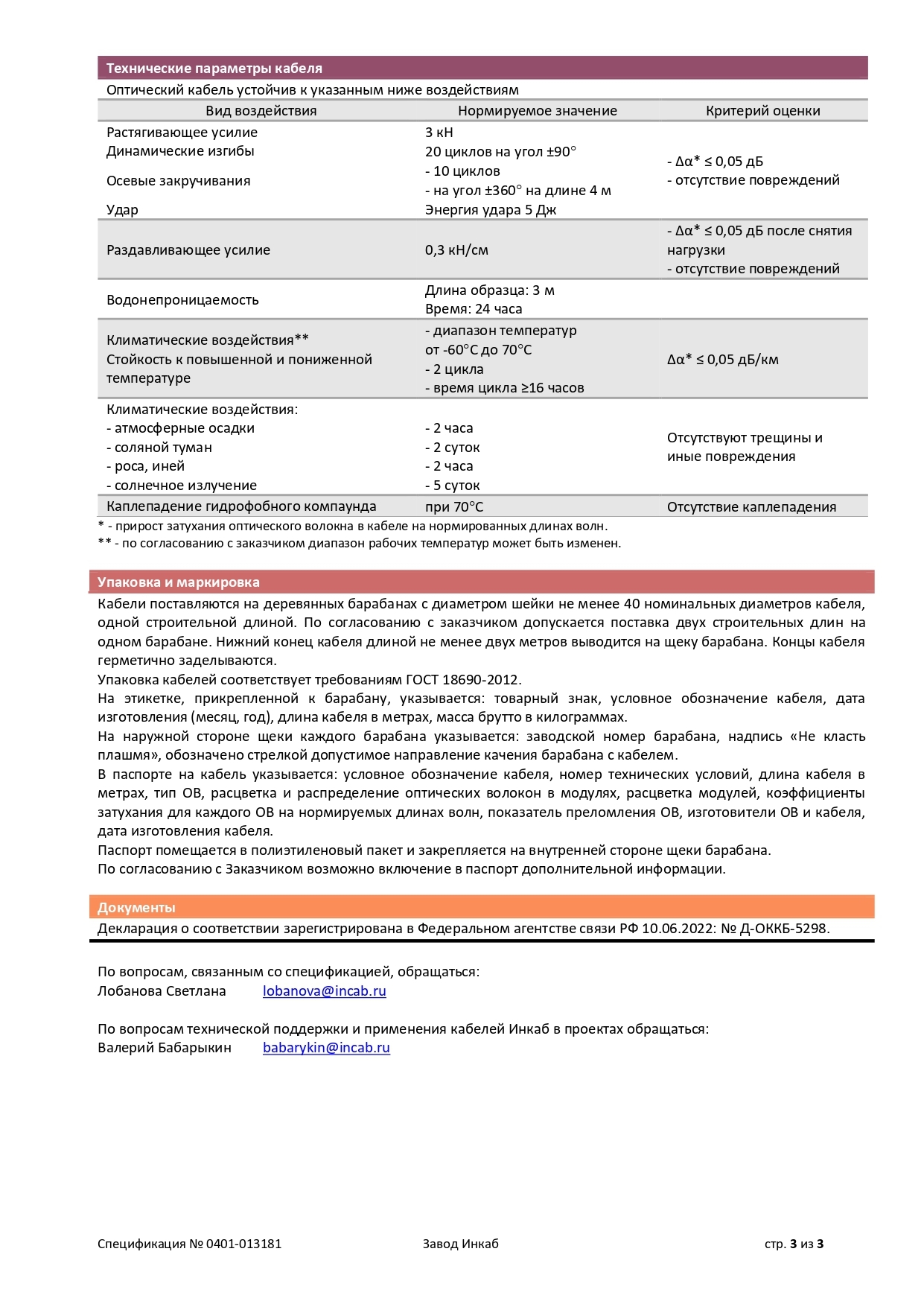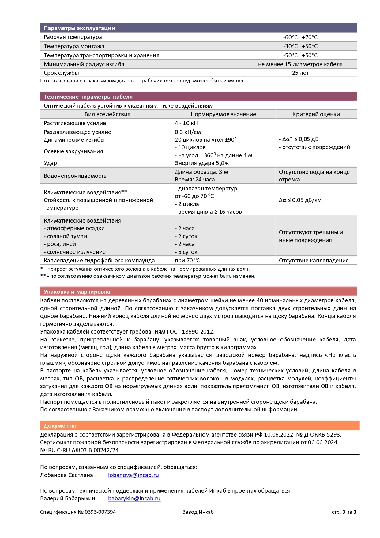 Спецификация ДОТс-П-3кН