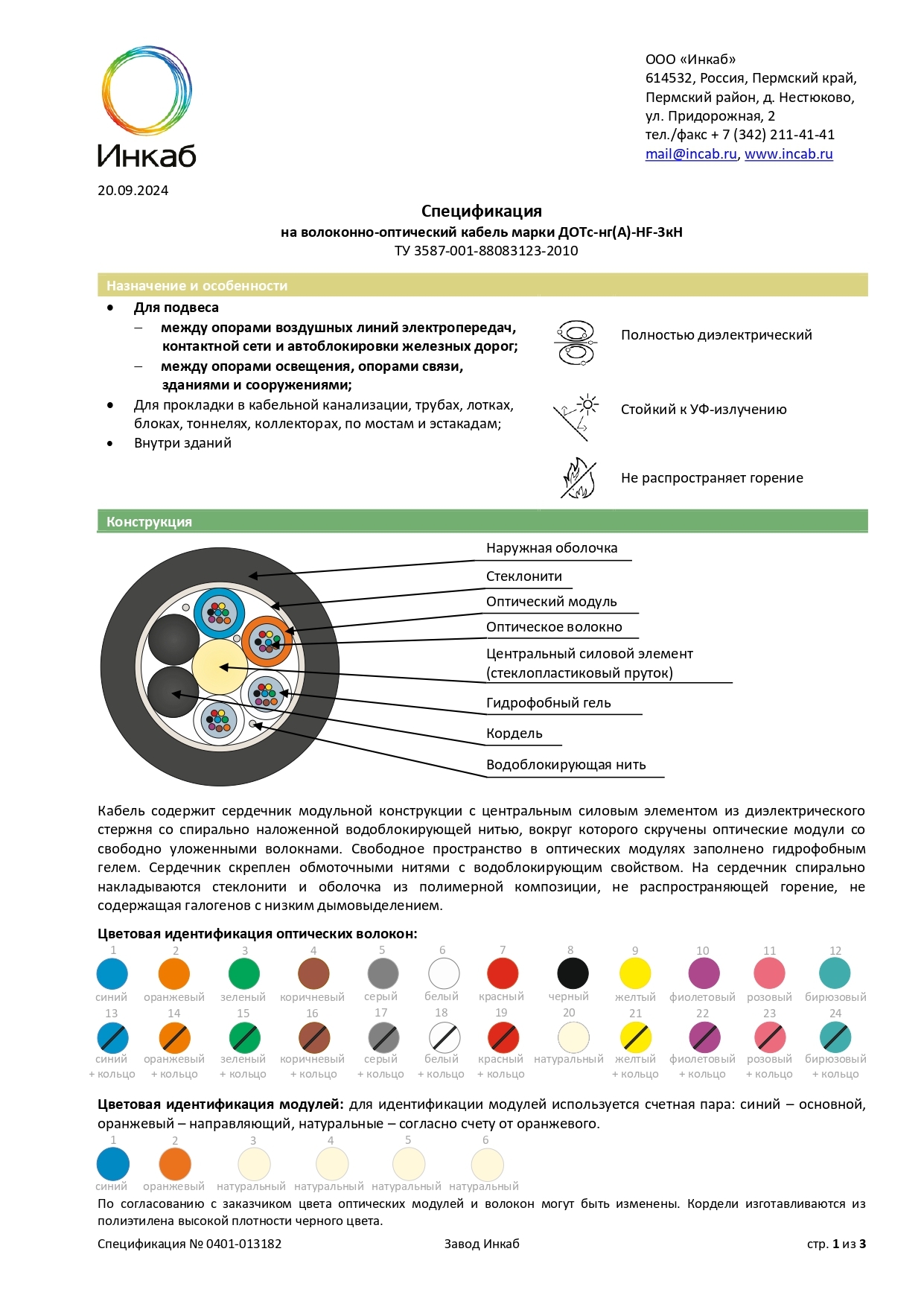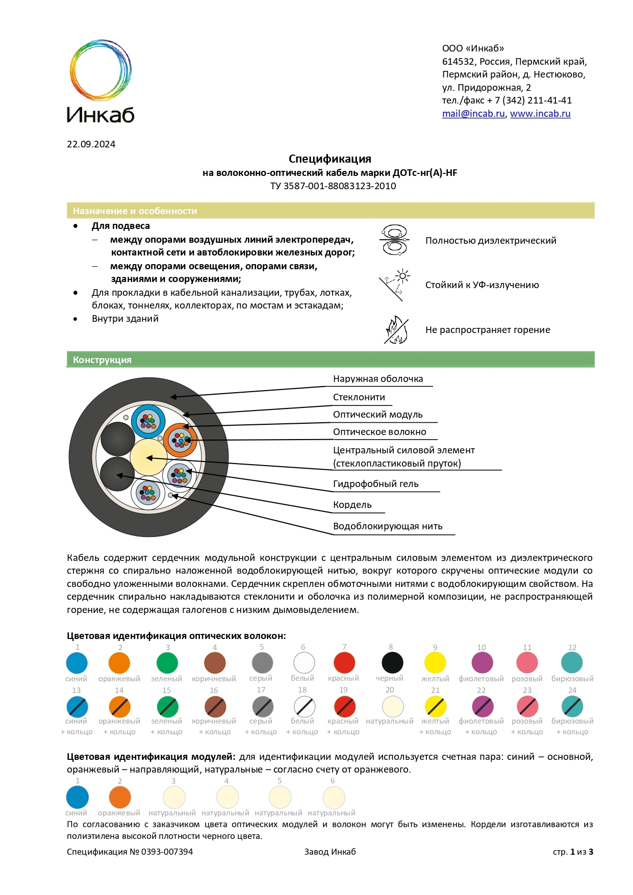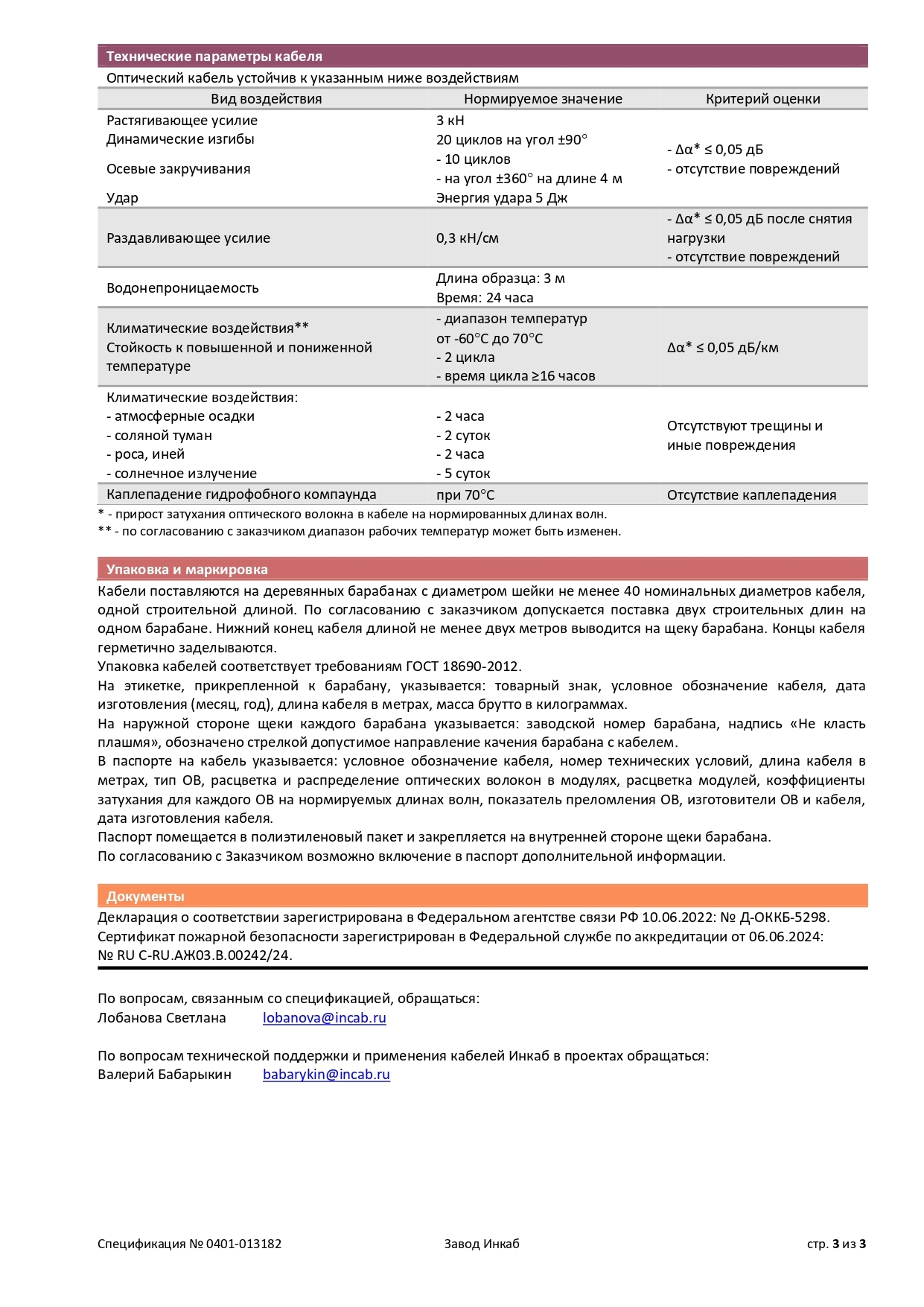 Безгалогенные. Спецификация ДОТс-нг(А)-HF-3кН