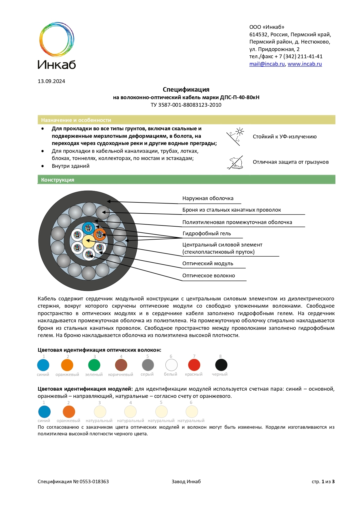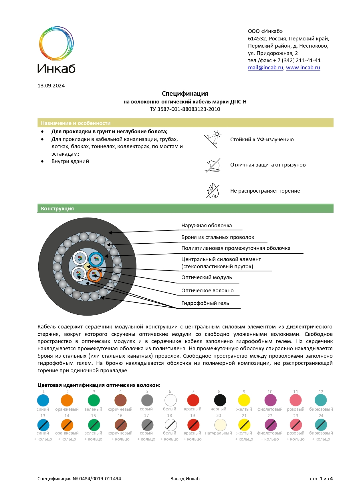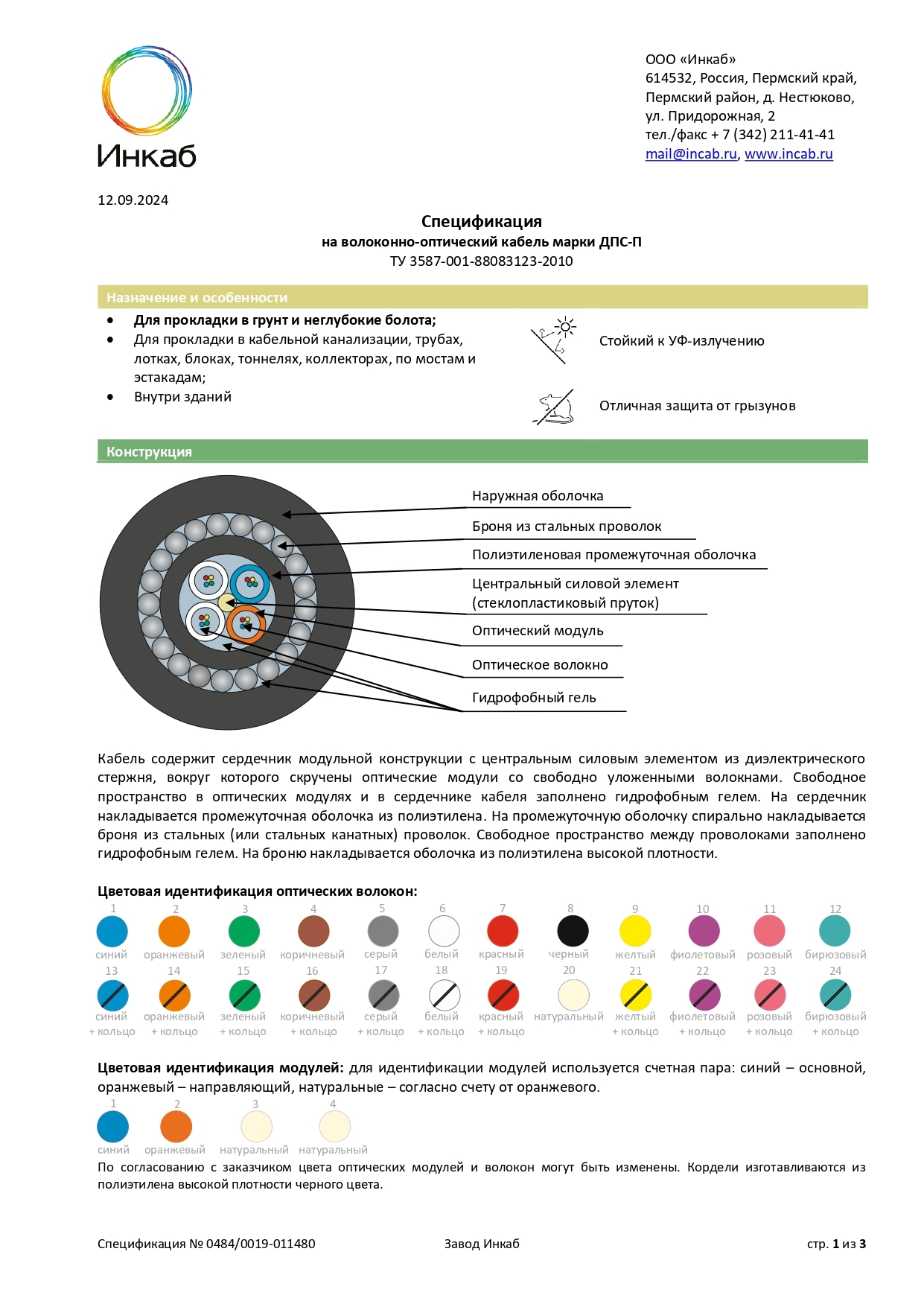 ДПС —стандартный многомодульный кабель с промежуточной оболочкой для прокладки в простой грунт. Применение: в грунт и неглубокие болота, в кабельную канализацию, трубы, блоки, лотки, тоннели, эстакады, мосты, коллекторы, внутри зданий.