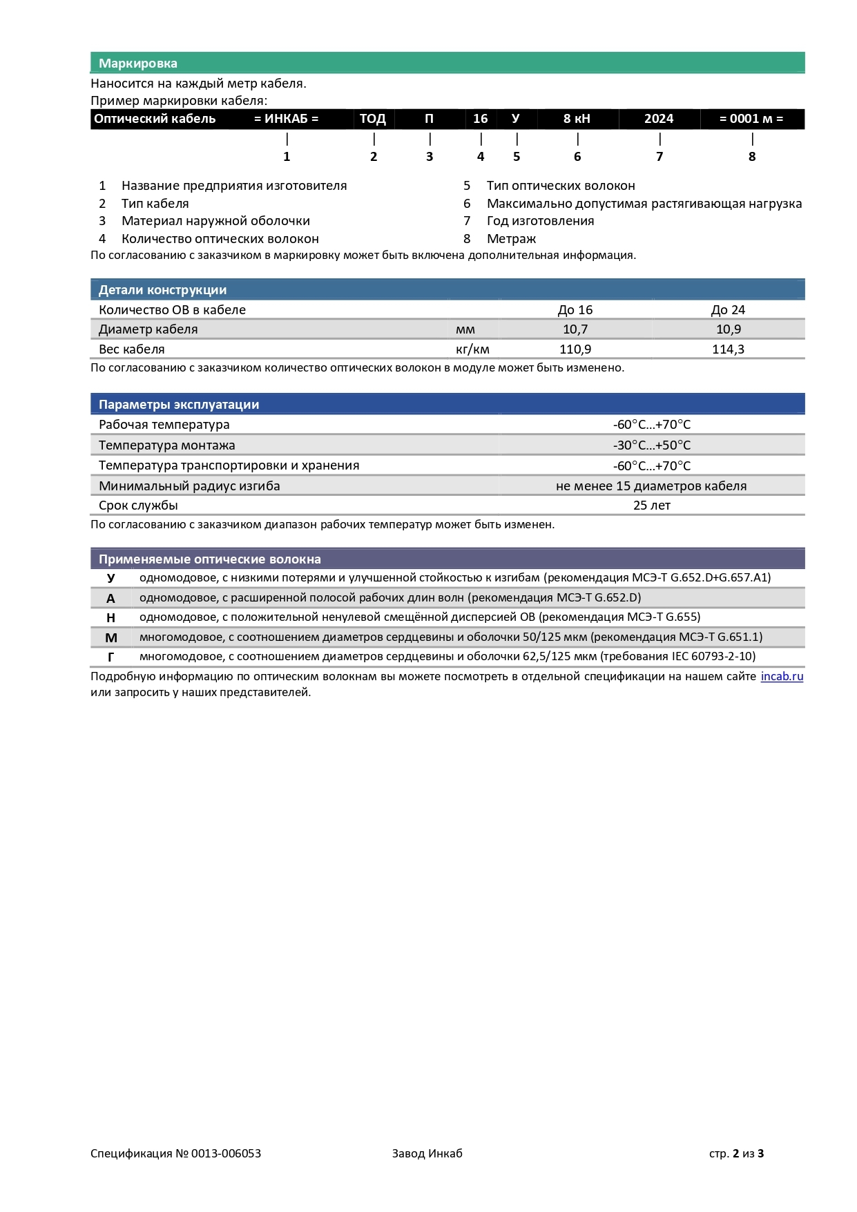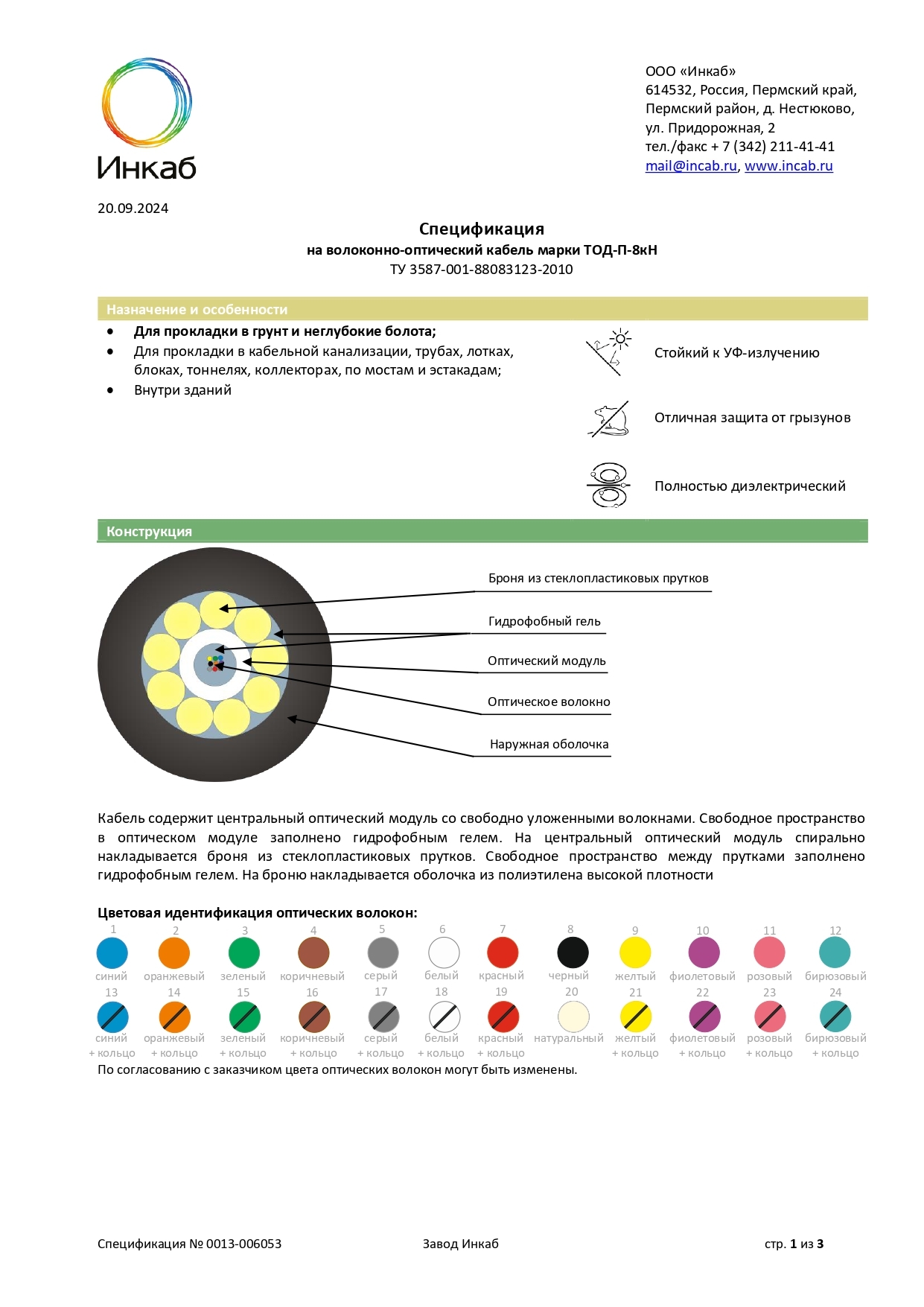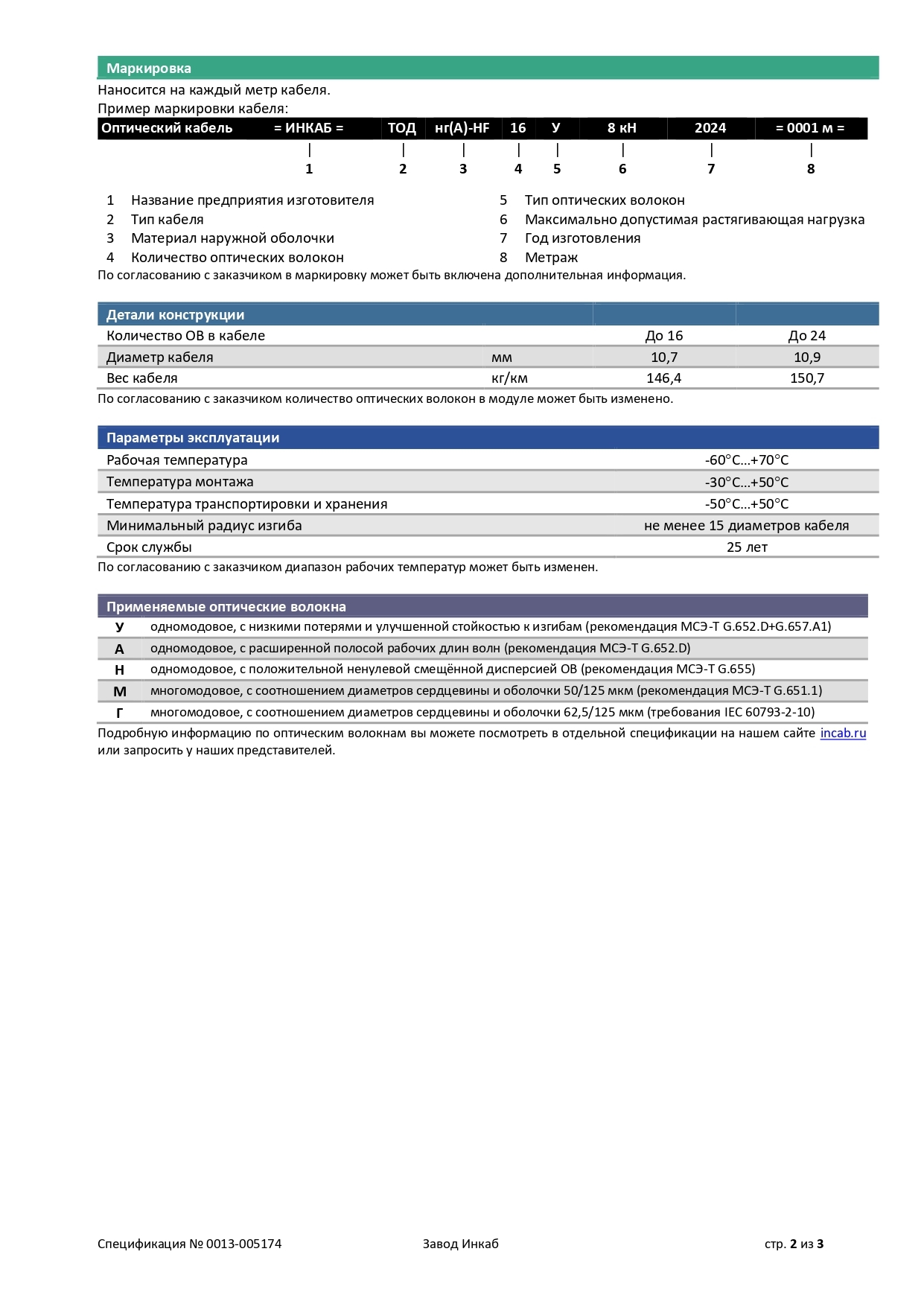 ТОД — легкий в грунт с центральным оптическим модулем (до 24 ОВ) и без промежуточной оболочки. Применение: в грунт и неглубокие болота; в кабельную канализацию, трубы, блоки, лотки, тоннели, эстакады, мосты, коллекторы, внутри зданий.