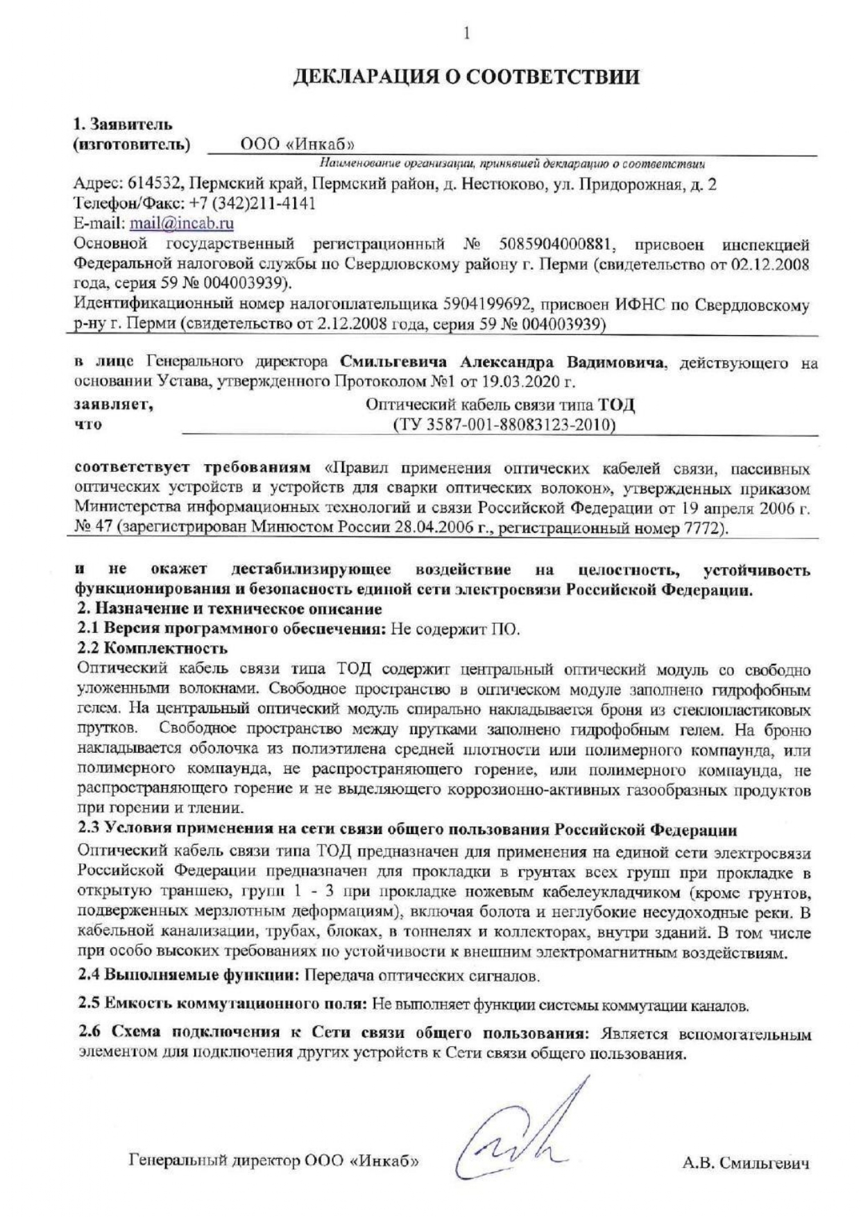 Декларация о соответствии Д-ОККБ-5305-ТОД