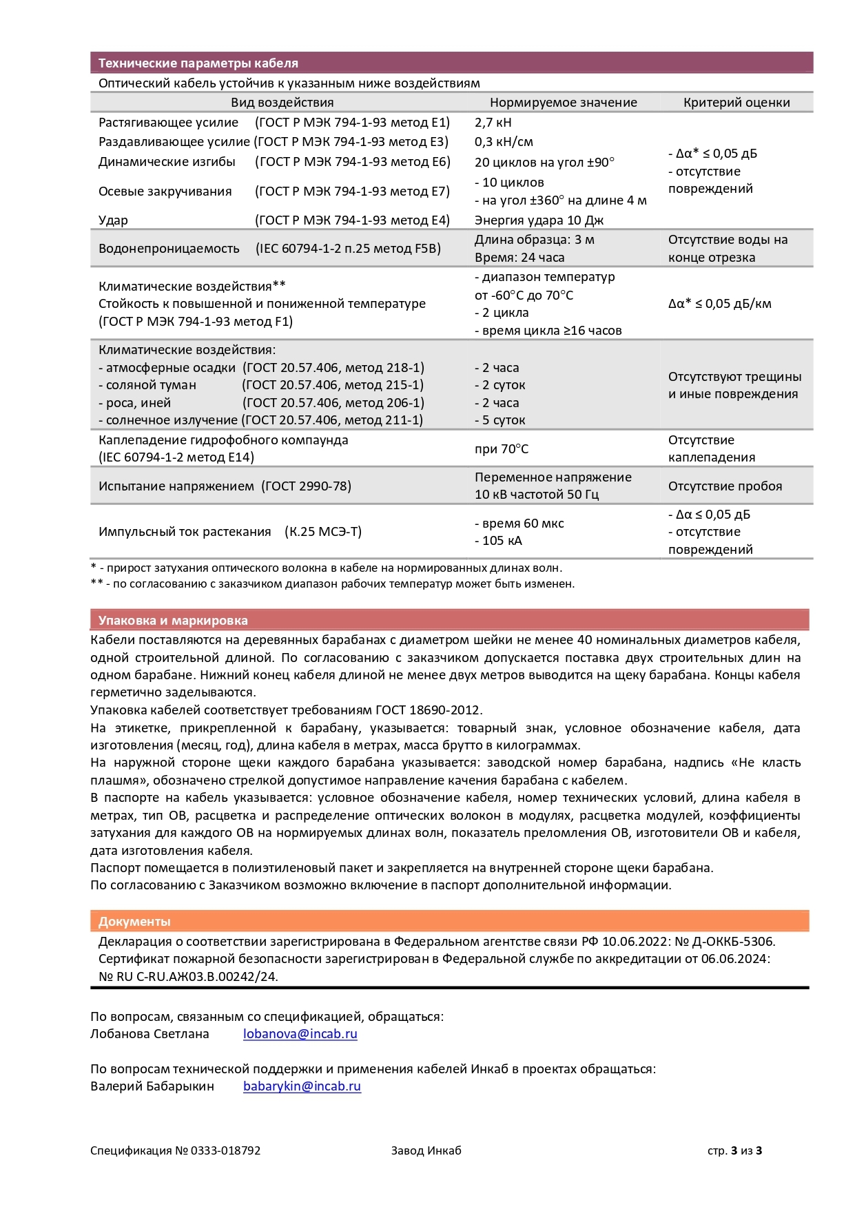 Безгалогенные. Спецификация ТОЛ-нг(А)-HF-2,7кН