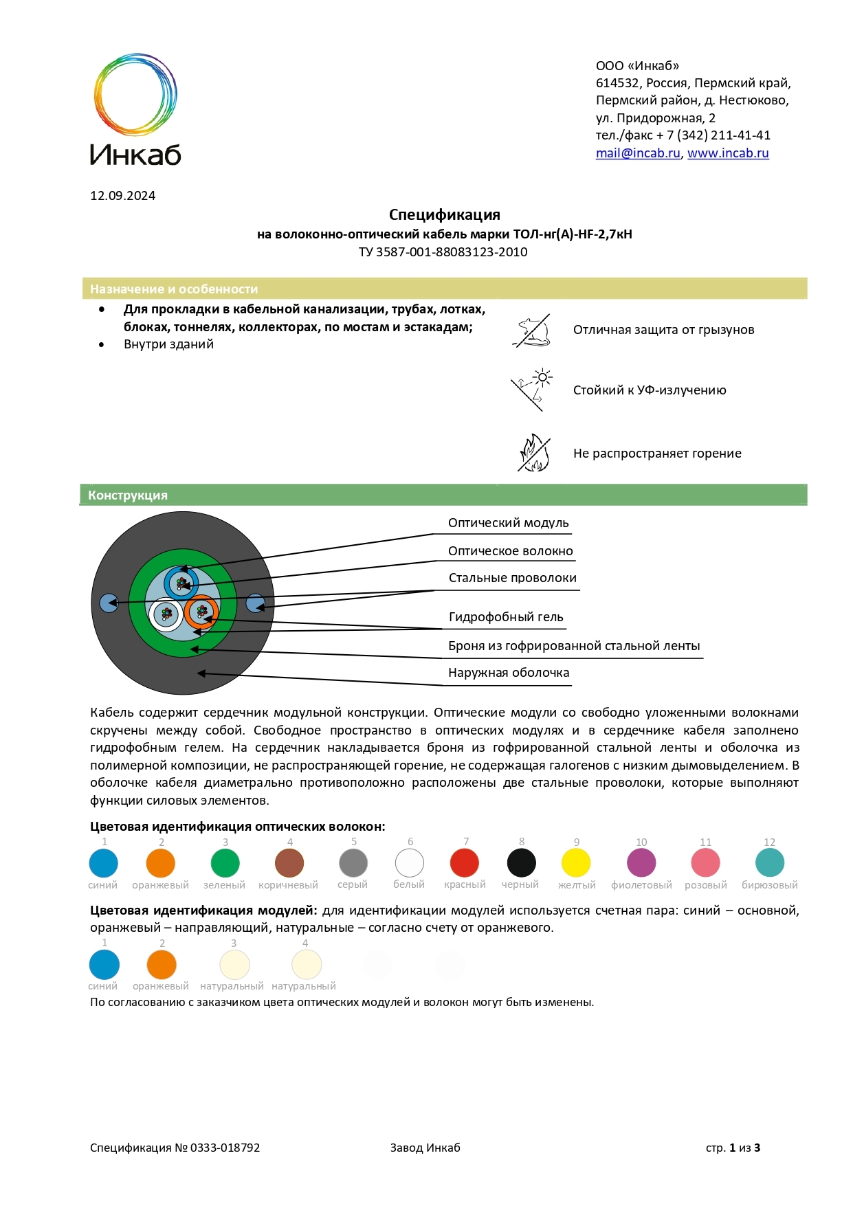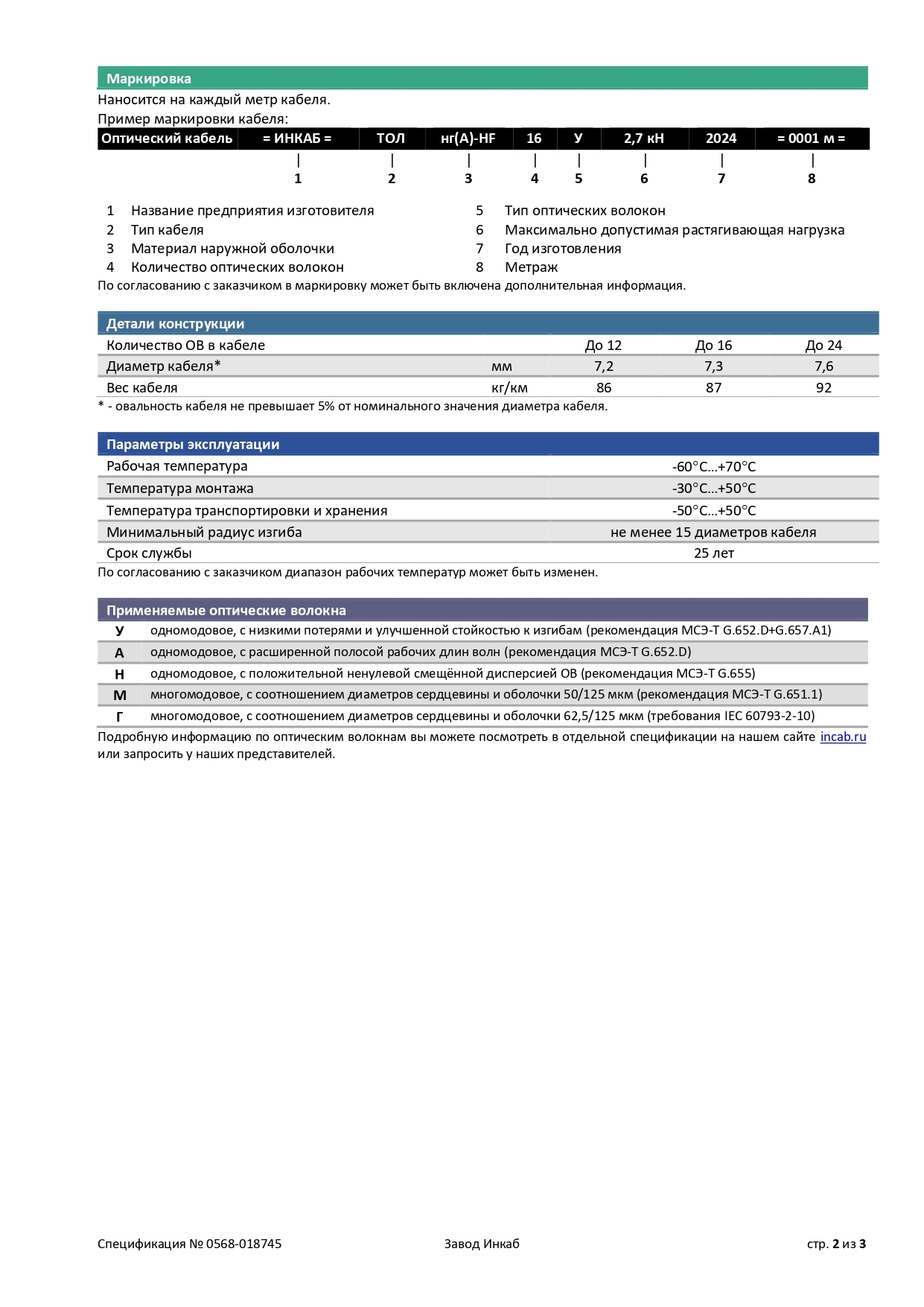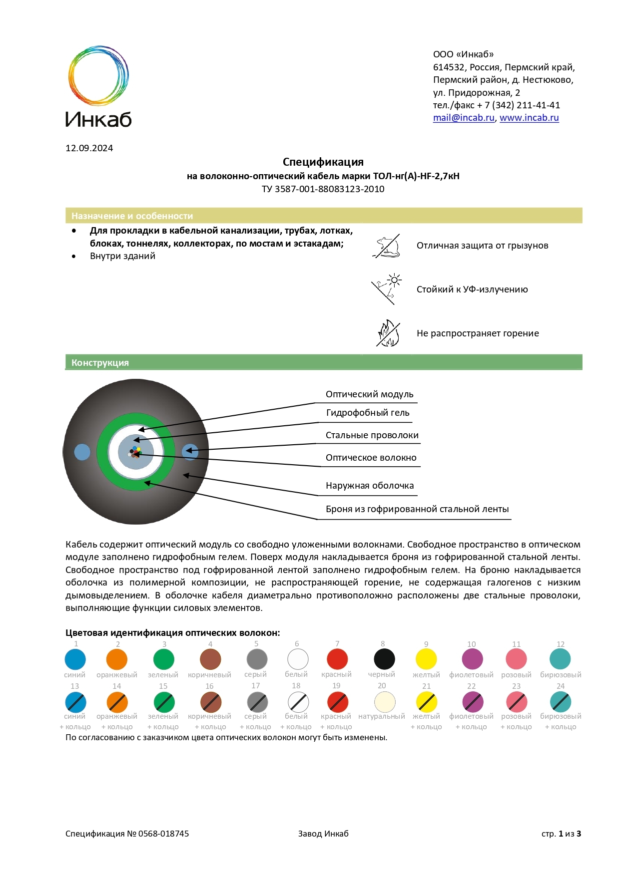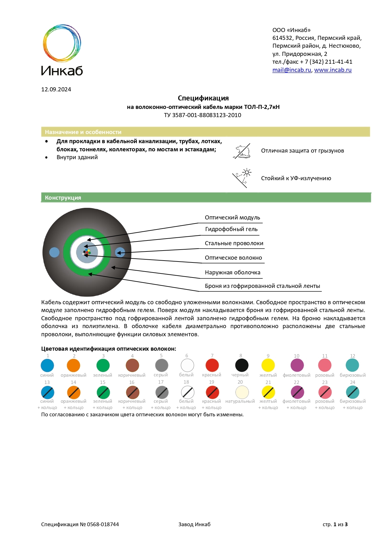 Легкий кабель без промежуточной оболочки, усилен двумя стальными проволоками, впаянными в оболочку. Выпускается с центральным оптическим модулем (до 24 волокон) – ТОЛ, и ТОЛ модульный– со скруткой модулей без центрального силового элемента (до 48 волокон). Экономичные конструкции с уменьшенным весом и размером. Применение: в кабельную канализацию, трубы, блоки, лотки, тоннели, эстакады, мосты, коллекторы, внутри зданий.