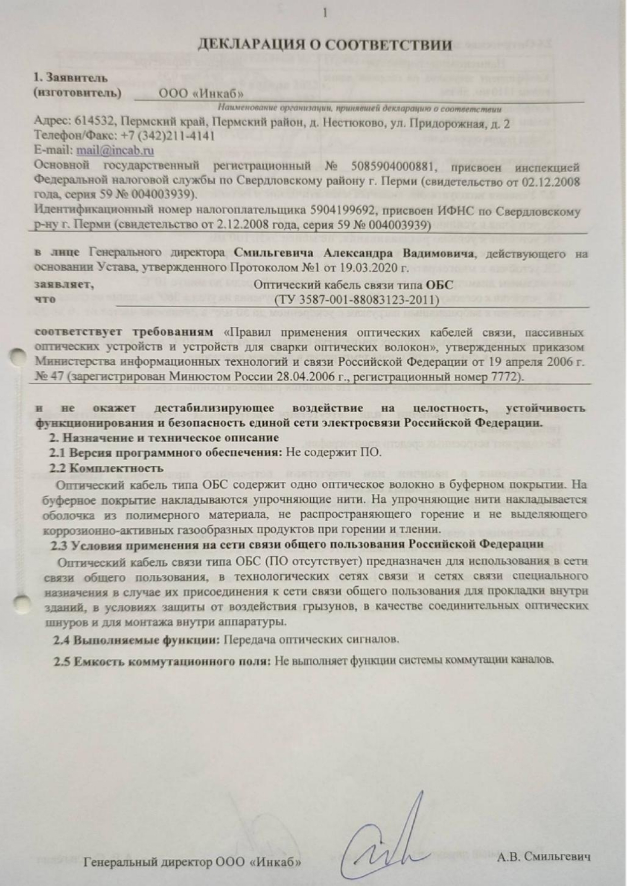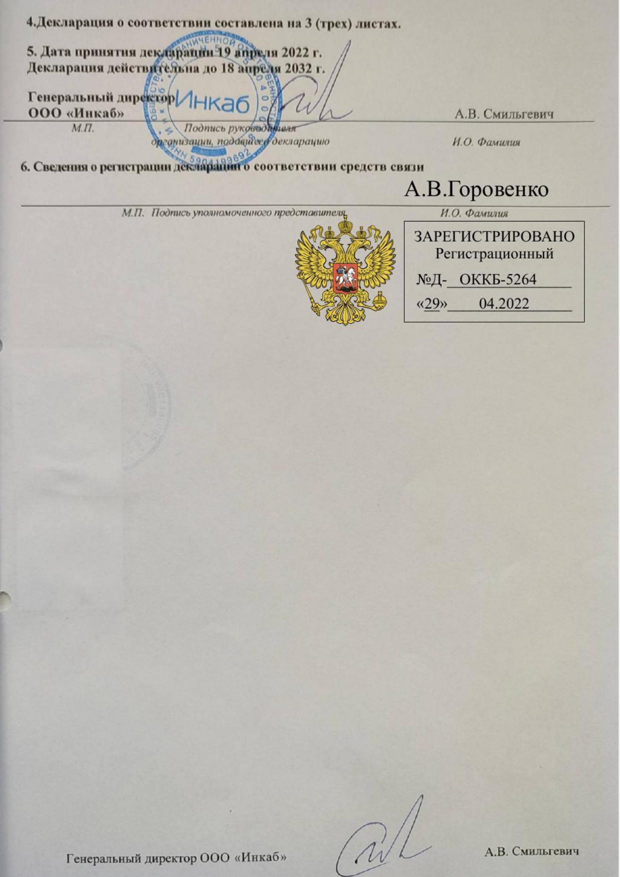 Декларация о соответствии Д-ОККБ-5264-ОБС