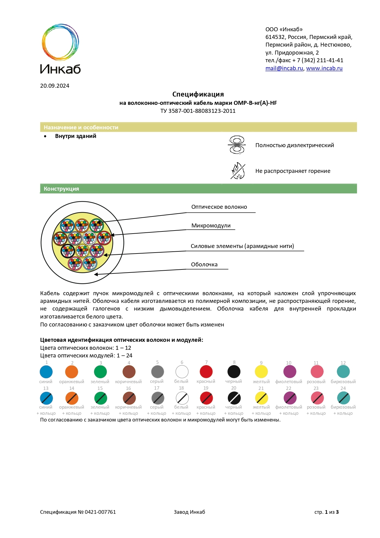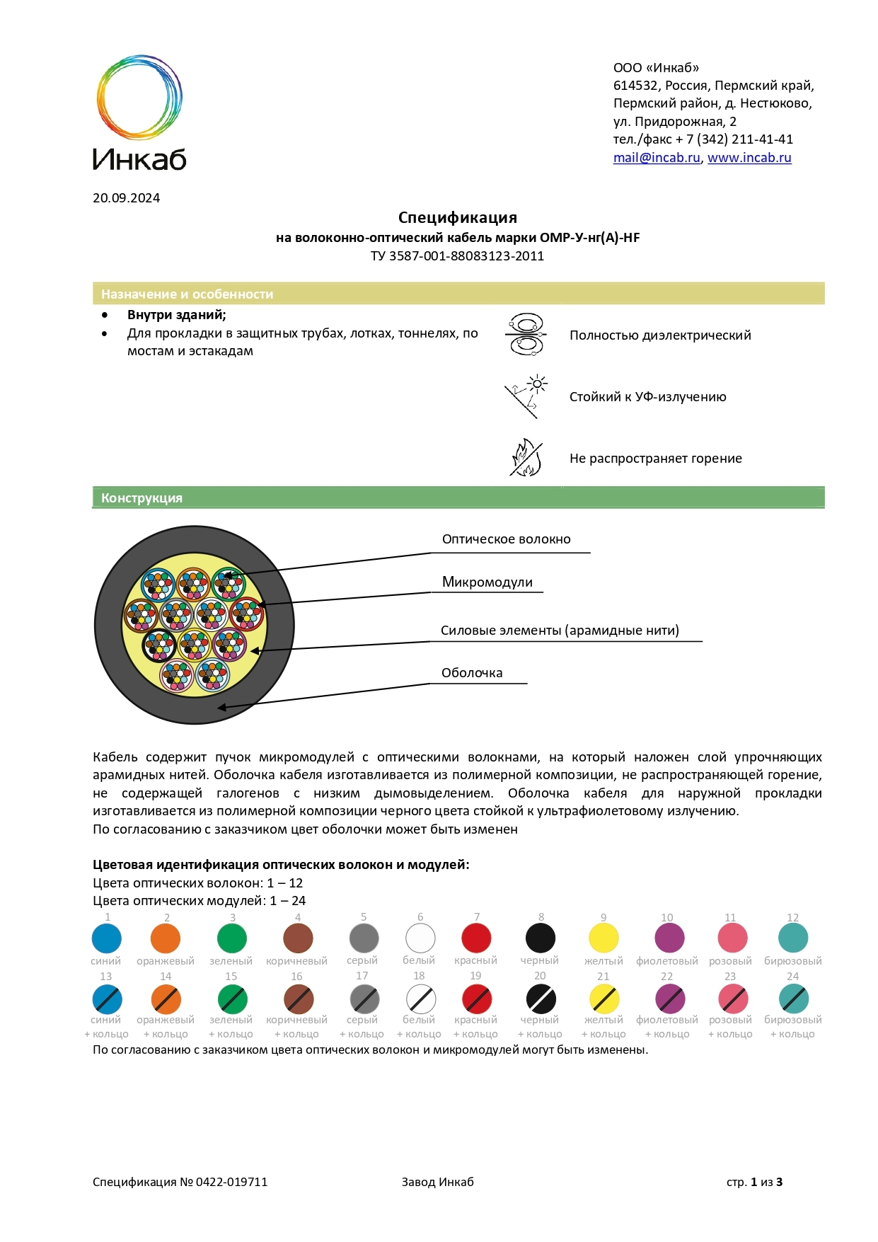 Конструкция Дистрибьюшна сходна с Райзером: волокно распределяется в микромодули (ОМР — до 24 волокон в микромодуле и до 48 микромодулей в кабеле), но вместо стеклопластиковых прутков конструкцию защищают арамидные нити. Они обеспечивают кабелю прочность, но не мешают изгибать его в любых направлениях. Применение: внутри зданий.