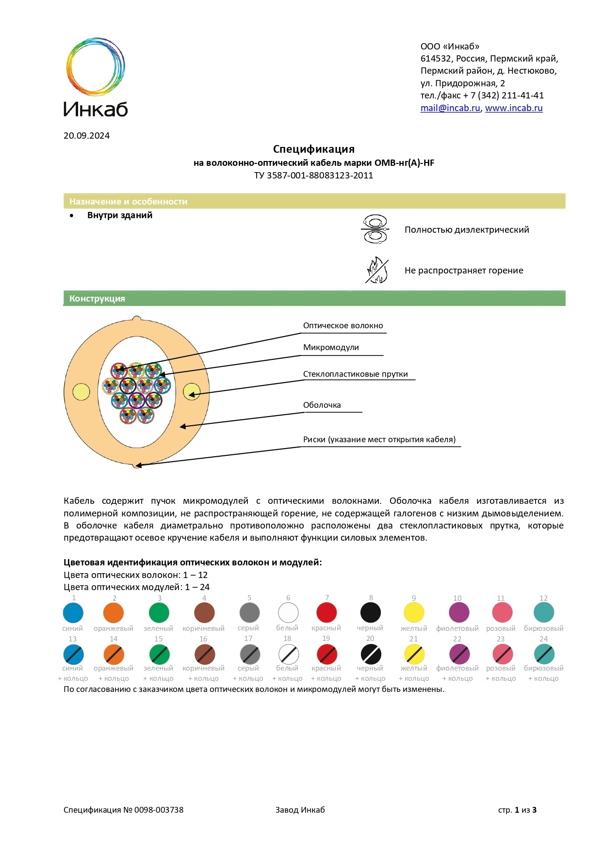 В Райзере ОМВ вместо буферного покрытия используются микромодули, каждый из которых содержит от 4 до 12 волокон. Количество модулей подбирается в соответствии с количеством этажей, а количество волокон в модуле — в соответствии с количеством абонентов на этаже. Возможны различные сочетания количества волокон в микромодулях и количества микромодулей в кабеле. ОМВ прекрасно подходит для высотных домов – отдельный микромодуль с волокнами доводится до каждой этажной коробки. Применение: внутри зданий.